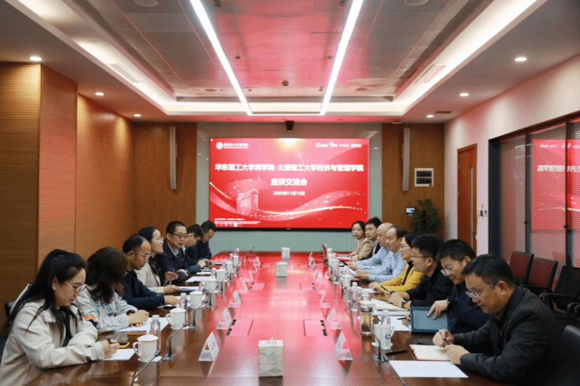 华东理工大学商学院的调研学习活动由该院党委书记侯丽敏主持,其院长范体军、党委副书记姚磊、副院长楼高翔、副院长汪冬华、副院长潘春阳、国际交流与认证办公室主任彭泽宇、党政办公室副主任翟慧娟参加了交流。交流会伊始,双方院长分别介绍了各自学院的发展概况。范体军院长围绕商学院在国际认证、行动学习教学改革等方面的实践成果展开阐述,重点分享了学院在iBEST人才培养模式等特色举措。栗继祖则聚焦太原理工大学经管学院的专业设置、学科布局及MBA教育发展情况展开了详细介绍,并就学院发展的难点同与会人员进行探讨。闫新对商学院的热情接待表示感谢,她表示通过此次交流收获颇丰,也期待未来与华理商学院在重大课题申报、优秀人才输送等领域实现更大的合作。