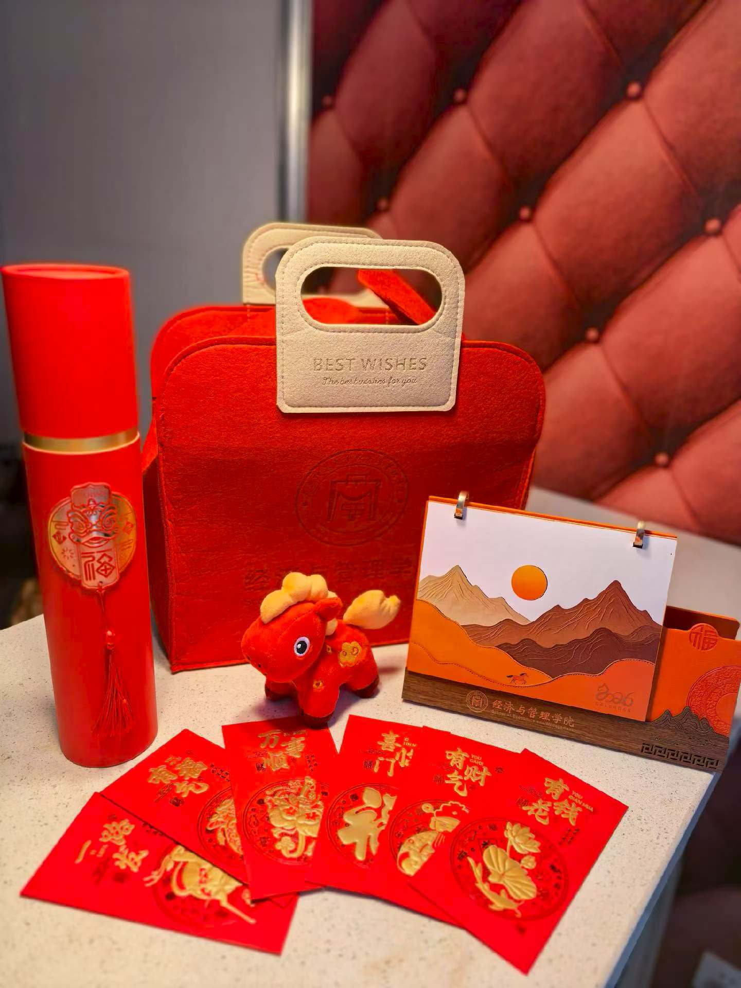 此次学院精心准备的新春福袋内含多重寓意深厚的新春贺礼:寓意着辞旧迎新、福气满满的春联,为校友的家门增添一抹喜庆的中国红;设计精美、承载着学院祝福的红包,寄托着对校友新一年财源广进、鸿运当头的美好期盼;憨态可掬、充满学院特色的定制马年玩偶,不仅是学院文化的生动载体,更传递着母校对校友的亲切问候与童真祝福;还有印刻着学院发展印记与新年日历的台历,陪伴校友在新的一年里规划时光,记录奋斗足迹,也时刻提醒着校友们与母校共同成长的点点滴滴。每一份福袋都由学院老师和学生志愿者们亲手整理、封装,从选品到包装的每一个细节,都凝聚着学院对校友们的深情厚谊与殷切祝福。