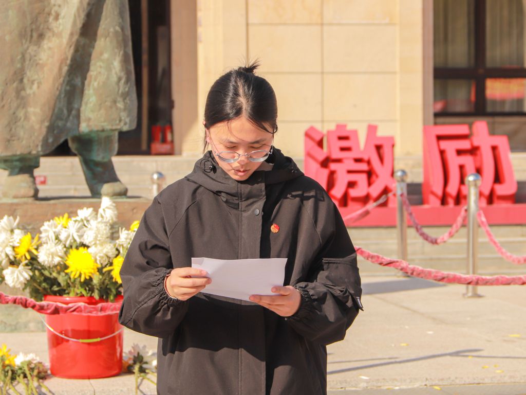 学院“青马班”学员代表李小苑同学发言,满含对革命先烈的崇敬与感恩,分享自己对高君宇革命精神的理解与感悟。她表示,作为新时代经管青年,将以高君宇同志为榜样,铭记历史、缅怀英烈,传承红色基因,锤炼过硬本领,把个人理想融入国家发展和民族复兴的伟大事业中,用实际行动践行青年担当,不负先烈嘱托、不负时代使命。