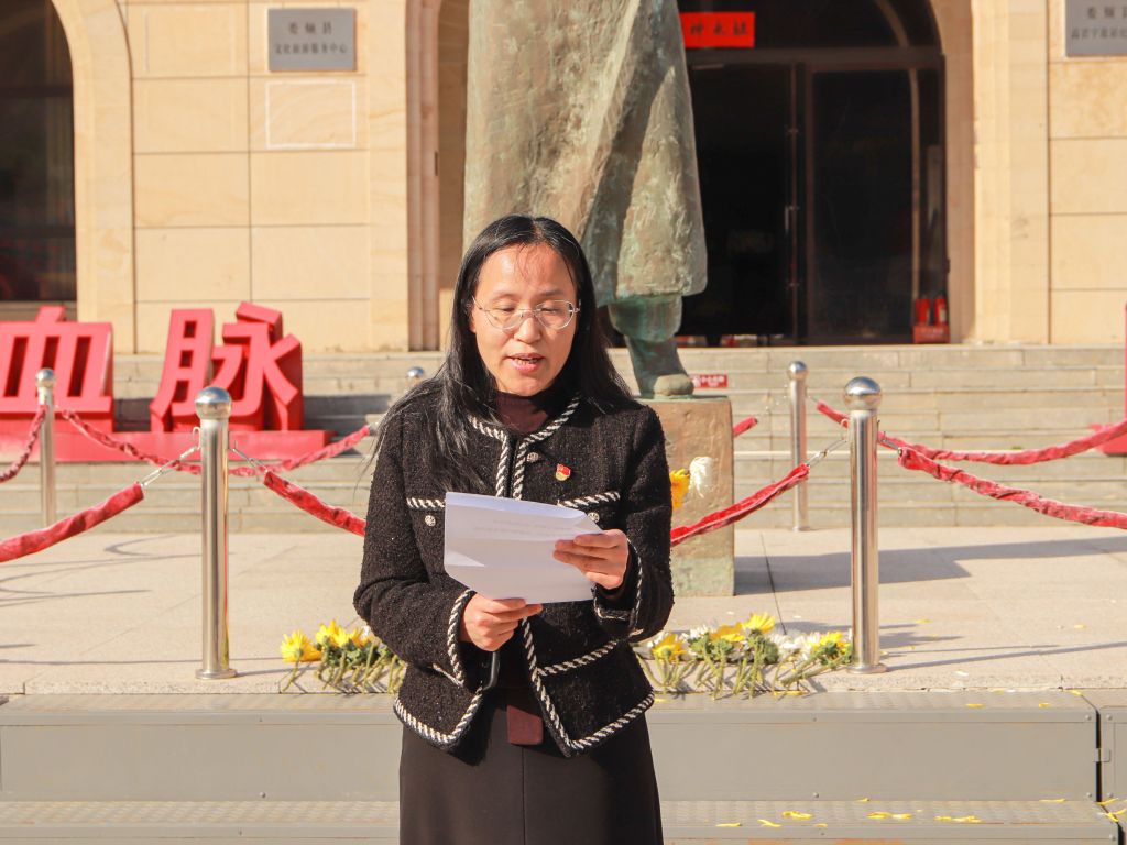 闫新为参与活动的师生讲授微党课。她结合高君宇同志的革命事迹,深情回顾了他从少年立志到投身革命,从传播马克思主义到创建党团组织,从领导工人运动到助力国共合作的光辉一生,深入解读了高君宇同志坚定的理想信念、无私的奉献精神和勇于担当的革命品格。她强调,高君宇同志是山西共产主义运动的启蒙者,讲山西共产党的历史,要从高君宇讲起,新时代青年要铭记英烈事迹,传承英烈精神,把对革命先烈的崇敬之情,转化为勤学笃行、奋发有为的实际行动,以青春之我、奋斗之我,肩负起时代赋予的使命与担当。她鼓励同学要努力成为“有理想、敢担当、能吃苦、肯奋斗”的新时代好青年。