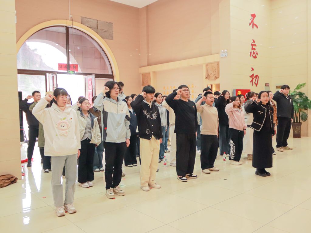 全体党员同志面向党旗,举起右拳,庄严重温入党誓词。