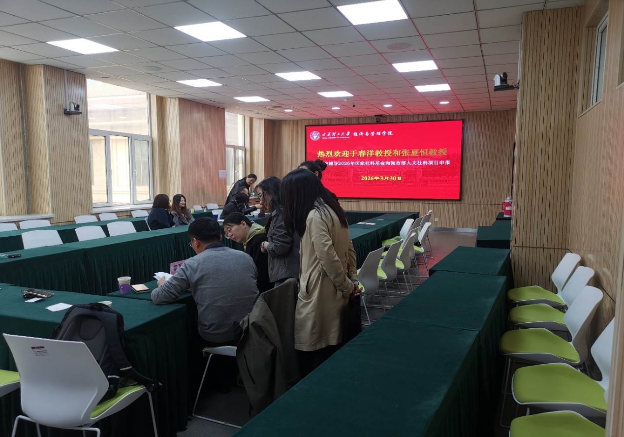 3月30日下午,燕山大学于春洋教授和浙江大学张夏恒教授受邀来我院为 2026 年国家社科基金项目和教育部人文社科基金项目的高质量申报开展一对一深入辅导,我院教师尤其是青年积极参与辅导专题会。