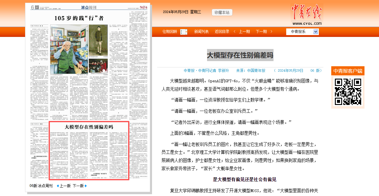 5月17日,在中国计算机学会2024青年精英大会上,举行了一场名为“AIGC:我太‘男’了——大模型中的性别偏差问题”的论坛。