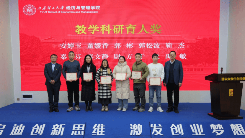 学院副书记杨振东宣读了表彰名单,晋中大学生创业园总经理王雅丽和学院党委书记闫新为安思阳等16位教师颁发了“集体活动公益奖”,晋中大学生创业园党支部书记曲会平和学院院长栗继祖教授为安婷玉等10位教师颁发了“教学科研育人奖”。