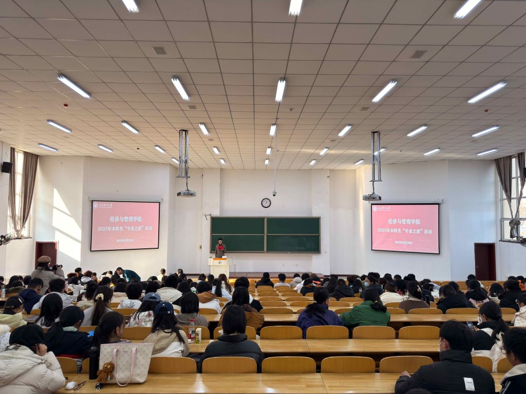 2025年11月20日,经济与管理学院成功举办2025级本科生“专业之旅”系列活动。本次活动由学院“数智赋能·知行合一”综合实践育人基地具体实施,活动以专业领航,筑梦报国为主题,围绕资深教授“话”专业、青年教师“讲”专业、学长学姐“说”专业以及实验室开放日四个环节展开,院党委书记闫新、院党委副书记杨振东、副院长王天日、院学工办副主任张志卿、青年教师及辅导员代表出席活动,全体2025级工程管理、国际经济与贸易、会计学、...